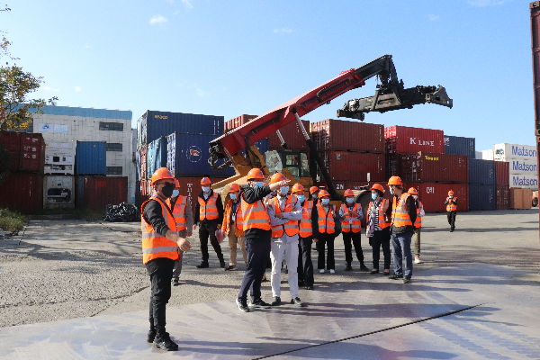 本次校企共建活动充分发挥了民主党派党员的作用,是支部协同统战力量开展党建工作的有力尝试。座谈前,老师们参观了公司的集装箱堆场,现场观摩学习了集装箱装箱、堆存的操作流程。