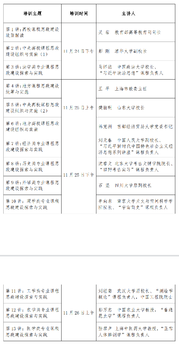 本次培训由教育部高等教育司指导,全国高校教师网络培训中心主办,培训内容共 13 讲,采用线上方式开展。