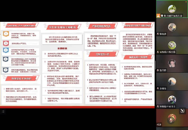 6月5日,学生第三党支部书记丁申楠介绍了《条例》制定的背景意义、主要原则、主要框架、主要内容、贯彻落实的具体要求。6月18日,学生第一党支部的学生党员分工对《条例》各章节内容进行分享展示。6月25日,学生第二党支部在支部书记白鹏的带领下,从总则、组织职责、思想政治工作、纪检工作、队伍建设和人才工作等方面重点学习了《条例》的深刻内容和主要特征。