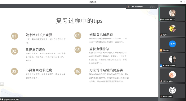 考研专场中,18级国际商务已经成功考上研究生的常杨杨、徐慧敏、徐雨欣同学,从考研动机、学习方法、择校经验、资料准备、考研时间安排、计划制定等方面为切入点,向同学们分享了自身考研经验:如何合理备战考研、加强学习专业知识、有效调整复习心态。