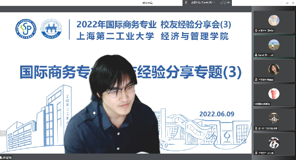国际商务专业在入选2020年上海市一流本科专业建设点后,致力于提高专业建设水平、人才培养质量,同时为了持续推进ACBSP国际商科认证和新文科认证,国际商务专业在2022年6月2日至6月15日期间举行了国际商务专业校友系列分享会,国际商务专业邀请已经毕业的优秀毕业生和行业精英通过腾讯会议平台进行线上分享,该系列分享会共五场,主题包括出国留学、国内考研、银行行业、外贸行业、商务行业专题,该系列分享会由国际商务专业负责人燕春蓉老师主持,专业教师姚莉、杨勇、姚薇、谭金菁等老师与2019级、2020级国际商务学生参加讲座。