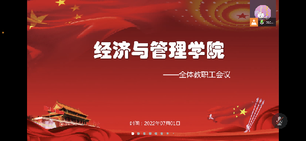 今天是伟大的中国共产党成立的101周年,同时也是香港回归的25周年,在这个双喜临门的日子,经管学院采用线上线下相结合的方式,召开了本学期期末教职工大会,总结本学期各条线工作情况,并对暑期以及下学期工作做全面部署。会议由院党委书记姚莉主持。