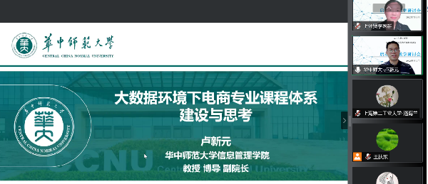 启动会上首先由11所高校参与负责人介绍本校电子商务教研室的情况,然后虚拟教研室负责人姚教授从建设特色、建设规划和工作形式等角度对虚拟教研室的工作设想进行了介绍。在教研活动环节中,贺盛瑜教授以题为“民族地区电子商务复合型‘四得’人才培养改革与实践”的教学成果入手,介绍了西昌学院电子商务教研室多年的专业改革措施与成效;华中师范大学卢新元教授从学科交叉、复合人才培养的角度做了“大数据环境下电商专业课程体系建设与思考”报告;最后姚卫新教授从新文科认证的角度介绍了当前专业认证的形势与挑战,为各校今后的认证工作开拓了思路,提出了要求,也给予了动员和鼓励,相信在本虚拟教研室的后续活动能为我校电子商务专业的发展带来更好的契机。