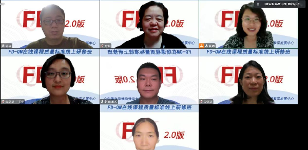 本次研修班采取线上工作坊的研修方式,强调学做结合、学做交互、学做贯通。在引导员带领下,学员开展独立学习、配对同伴互学、小组研讨、全班交流等多种形式的活动,学习利用FD-QM标准对混合式在线课程设计进行深入分析和合理评判。