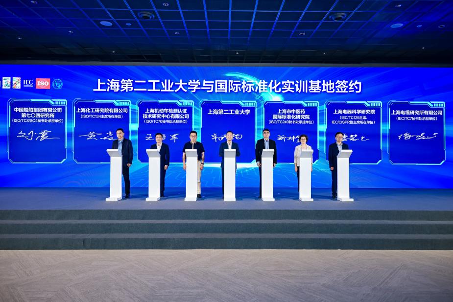 我校经济与管理学院卓武扬院长作为我校代表与六家国际标准化实训基地完成签约。签约企业包含上海电缆研究所有限公司(IEC/TC7秘书处承担单位)、上海机动车检测认证技术研究中心有限公司(ISO/TC70秘书处承担单位)、上海市中医药国际标准化研究院(ISO/TC249秘书处承担单位)、中国船舶集团有限公司第七0四研究所(ISO/TC8/SC4秘书处承担单位)、上海电器科学研究院(IEC/TC125主席、IEC/CISPR副主席所在单位)以及上海化工研究院有限公司(ISO/TC134主席所在单位)。