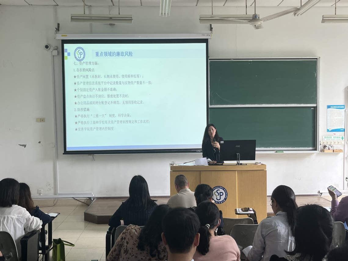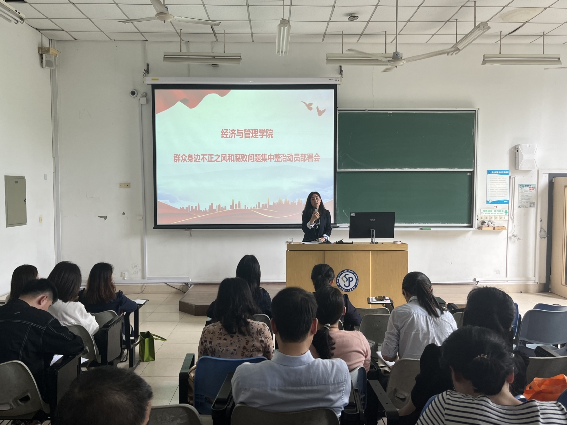 结合学院实际,乔立清向全体教师通报了经济与管理学院在招标采购方面存在的廉政风险,并就群众身边不正之风和腐败问题的集中整治作了动员部署,希望全体教师给予监督。