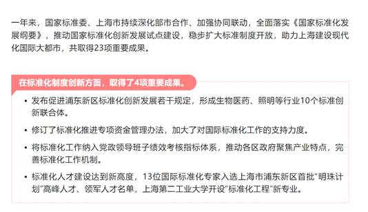 我校经济与管理学院“标准化工程”专业的开设成为国家标准委、上海市持续深化部市合作、加强协同联动,全面落实《国家标准化发展纲要》,推动国家标准化创新发展试点建设,稳步扩大标准制度开放,助力上海建设现代化国际大都市的23项重要成果中的内容。