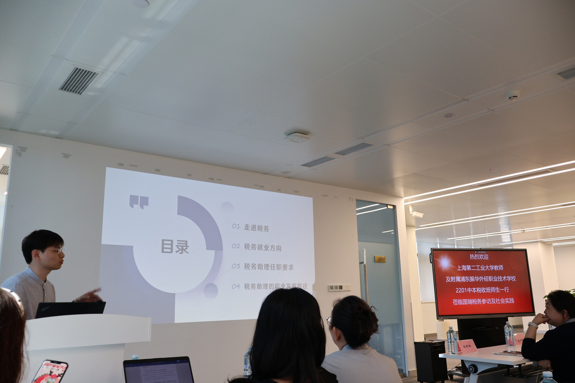 为了深化税收专业教学,加强学校与税务行业的交流合作,2024年5月24日上海第二工业大学税收学专业全体教师与浦东振华外经职业技术学校师生一同走进了上海国瑞税务师事务所,展开了一次别开生面的企业参观与交流活动。这次活动既为学生们提供了近距离感受税务实践的机会,也让教师们深入了解了税务行业最新发展动态。