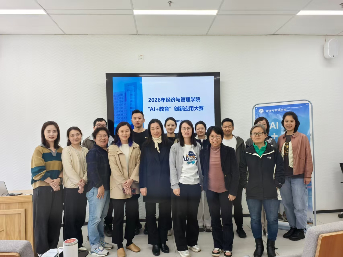4月15日,2026年经济与管理学院“AI+教育”创新应用大赛在17号楼104教室圆满举行。学院党委书记乔立清、院长卓武扬、教学院长潘海兰、孟琪教授、办公室主任廖珊担任本次竞赛评委,学院各党支部、院办、教务办、实验室、辅导员队伍及各专业教研室积极组织动员,全院教职工踊跃参与,共征集到29个参赛项目,75名参赛人员涵盖一线教师、辅导员、行政管理人员及党务工作者,形成了全员参与、协同创新的良好氛围。